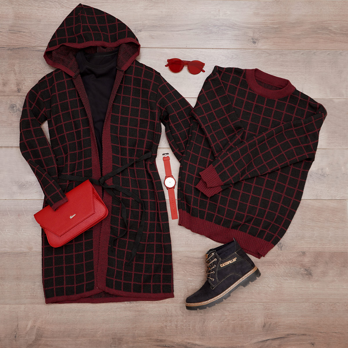 رنگبندی : مشکی - زرشکی (طرح 4 خانه)