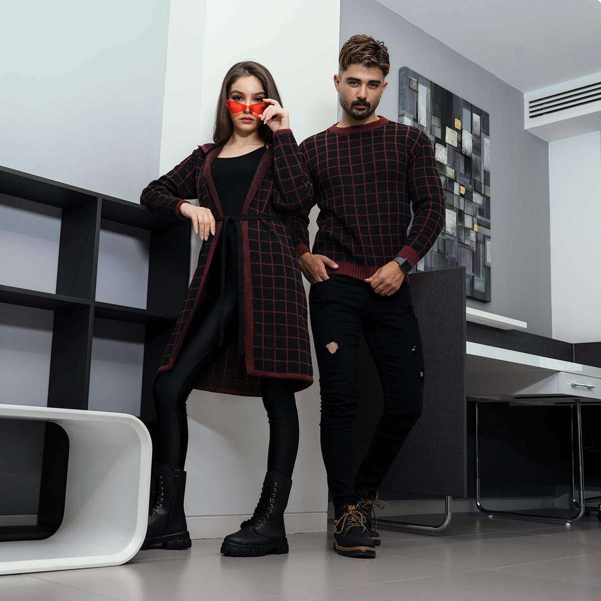 ست پلیور مردانه و مانتوی زنانه